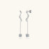 Let your shine flow. Sculpted silver curved line trace the ear, accented with subtle crystal sparkle. A delicate chain drops to a luminous stone, catching the light with every step. Exquisite and fluid, these moissanite tassel earrings add a little something to your ear party.