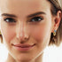 Designed to radiate your golden glow. These U-shaped gold hoop earrings feature a luminous moissanite at the front top with delicate mini moissanites trailing behind. Each facet captures warm light, creating a luxurious sparkle that draws the eye and adds a radiant, effortless shimmer to every movement.