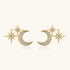Pave North Star Moon Stud Earrings - Gold