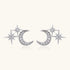 Embark on a stellar journey and embrace your inner starlight. The exquisite silver-toned studs feature a delicate crescent moon adorned with shimmering pavé stones, seamlessly merging with celestial stars for a look that's truly out of this world. Reward yourself with a touch of celestial elegance.