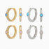 Dazzling brilliance meets meaning. Gold huggie hoops sparkle with white mini cubic zirconia at the front, while a luminous round opal at the center radiates inner light. Elegant and symbolic, they capture joy, clarity, and warmth, creating a refined gift to shine and inspire.
