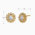 Blooming brilliance. Gold flower studs cradle a luminous round opal at the center, with petals trimmed in sparkling white cubic zirconia that catch the light like morning dew. Elegant and symbolic, they embody growth, joy, and inner radiance, making a refined gift to treasure.
