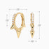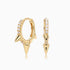 Edgy elegance. These gold huggie hoops feature a pavé of sparkling stones and three sculptural spikes, catching light with every movement. Minimal yet striking, these inverted spike earrings add a subtle playful edge to daily wear or layered styling—a quiet celebration of modern sophistication.