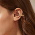 Triple gleam of sophistication. These starry gold ear cuffs showcase three pavé-studded rows, tracing a refined, sculptural curve along the ear. Easy to wear without piercing, these triple cuffs stay secure and comfortable-ideal for layering, stacking, or adding a luminous, modern accent to any look.