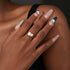 Golden union of souls. This radiant gold You & Me ring pairs a pear-shaped and an emerald-cut moissanite, symbolizing two lives intertwined. The prong-set stones shimmer brilliantly, the warm gold band enhancing the union’s elegance and making your love shine in luxurious gold.