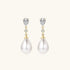 Gilded elegance meets timeless grace. Pear-shaped stones sparkles atop delicate zirconia links, leading to a lustrous teardrop bead in a warm gold cap. Light-luxury drop earrings perfect for weddings, special occasions, or a refined everyday glow.