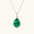 Pear Emerald Diamond Halo Necklace - Silver