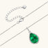 A cool glow that captures attention instantly. A pear-cut green stone rests in sleek silver, framed by a crisp halo that enhances its clarity and vivid color. This light-luxury pendant reflects emerald birthstone meaning and offers a radiant shine for every moment.