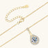 A drop of light, framed in gold. A pear cut moissanite, framed by a shimmering halo in warm gold, reflects a soft, jewel-like glow. Resting softly against the skin, this exquisite drop necklace elevates everyday style and makes a meaningful gift.