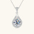 Luminous silver, forever in bloom. A pear-cut moissanite in a shimmering halo of polished silver, framed as a jewel-like drop necklace, catches the light. Resting against the skin, it creates an opulent, luminous presence that elevates both everyday style and special occasions.