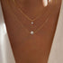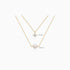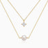 A sparkling diamond hovers above a soft pearl, like starlight kissing the morning dew. This gold layered necklace features a shorter chain with a dangling diamond solitaire and a longer dainty glass pearl strand beneath. Radiant and elegant, it adds a warm, luminous charm perfect for layering or wearing alone.