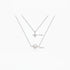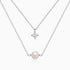 A twinkling diamond floats above a gentle pearl, like moonlight resting on calm waters. This silver layered necklace pairs a shorter chain with a dangling diamond solitaire and a longer dainty glass pearl strand below. Serene and luminous, it creates an ethereal glow ideal for layered styling or everyday elegance.