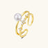 Radiant Diamond Pearl Double Band Open Ring - Gold