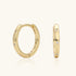 Golden huggie hoops shimmer with refined elegance, featuring precision-set stones along a delicate hoop. They hug the earlobe comfortably, providing a secure fit and subtle sparkle with every movement, creating a radiant finish perfect for layering or wearing solo.
