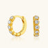 Dainty gold, max brilliance. These huggie hoops sparkle with precision-set stones along the front, hugging the earlobe comfortably for a secure fit. Their polished golden surface catches the light beautifully, offering a radiant finish perfect for layering or wearing solo with effortless elegance.
