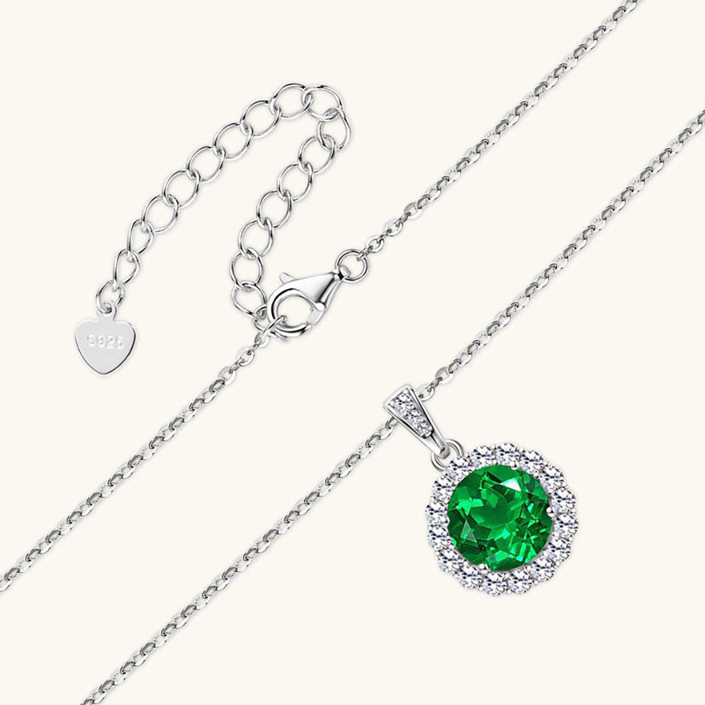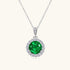 Round Emerald Diamond Halo Necklace - Silver