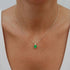 Timeless Emerald Solitaire. An 8mm round emerald-colored stone shines in a 6-prong silver setting, exuding clarity and elegance. Symbolizing growth, balance, and heartfelt intentions, this pendant makes every day special, because you deserve the very best.