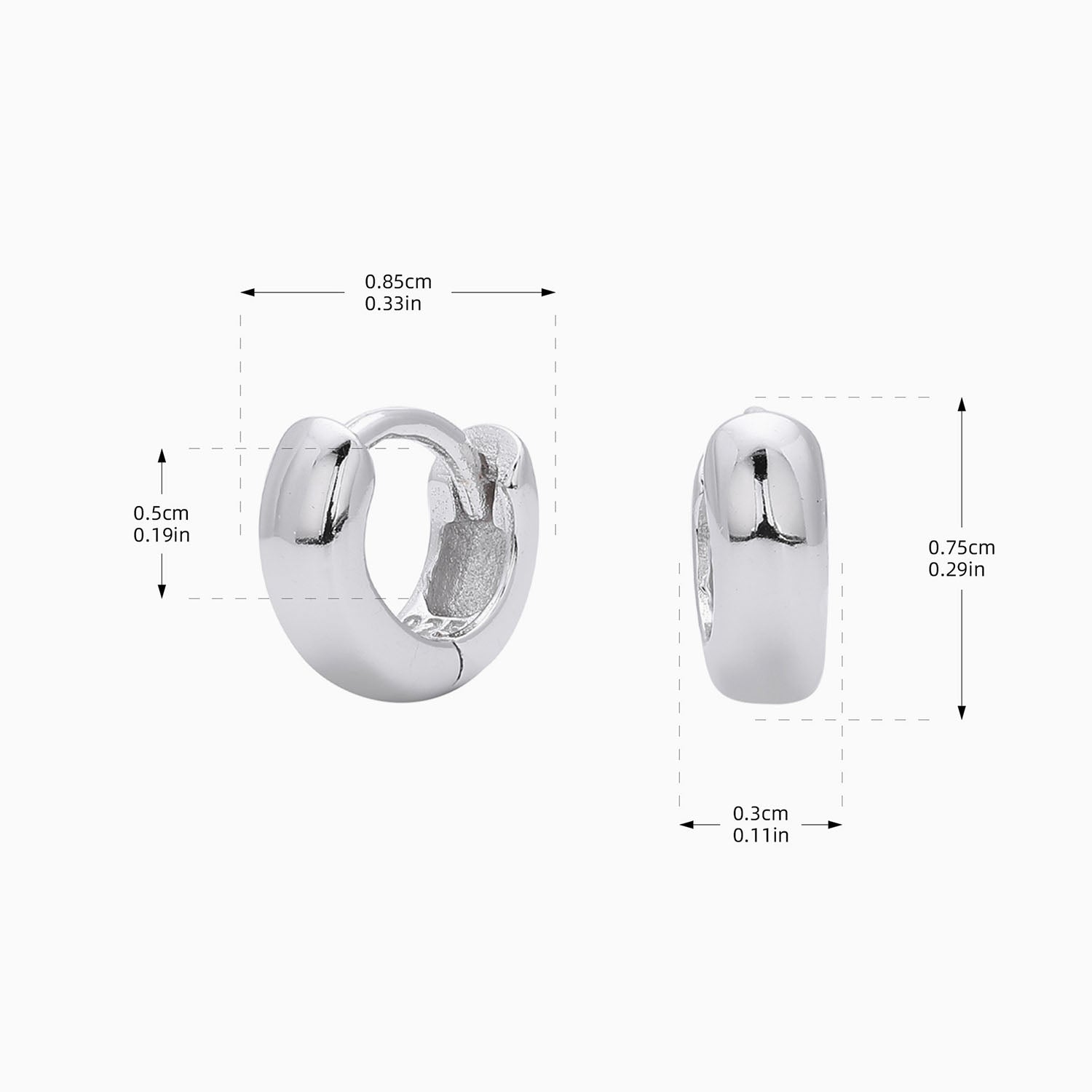 Cool-toned silver catches the light with a smooth, quiet gleam. These minimalist huggie hoops offer a sleek polished look that suits any style. Designed for effortless daily wear, they bring a touch of luminous refinement whether worn solo or paired with other earrings.
