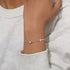 A modern expression of clarity and grace. This silver bracelet features a polished sideways cross at the center, paired with a 4mm bezel-set moissanite on the side for a gentle touch of brilliance. Clean, radiant, and thoughtfully made, it elevates everyday style with ease.
