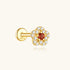 Blooming ruby. This flower-shaped stud earring features a round garnet center framed by mini round white stones, creating a delicate floral design. Perfect for cartilage or layered ear stacks, it adds refined sparkle and luxurious elegance to any look.