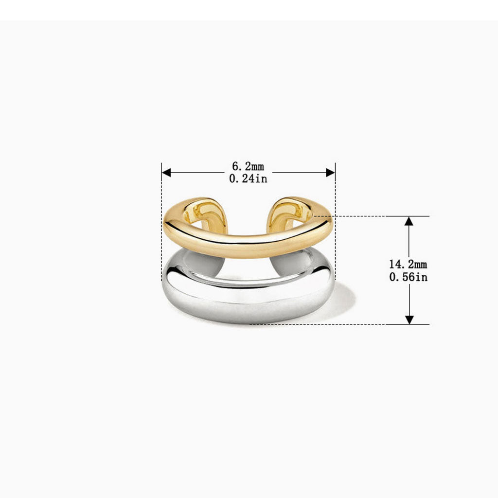 No piercing? No problem! One part shimmering gold, one part cool silver, a match made in jewelry heaven. The smooth, curved double C hugs your ear perfectly. Slay with this dual tone ear cuff and let your style insta-worthy style effortlessly.