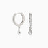 Twice the brilliance in one. Silver half-eternity hoops are adorned with a bezel-set pear-shaped charm, gleaming with subtle sparkle. Sleek, sculptural, and effortlessly luminous, these drop huggies elevate solo or stacked styling with refined elegance and versatile layering options.
