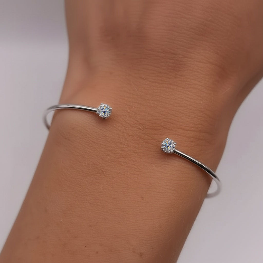 Sparkly Moissanite Cuff Bracelet - Silver