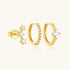 A refined constellation of gold. This curated earring trio includes a delicate triple-stone stud, a shimmering pavé-kissed mini hoop, and a luminous single-stone huggie. Each piece brings its own spark, harmonious when stacked, striking on its own. A modern mix designed to elevate everyday looks with effortless shine and endless styling freedom.