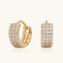 Triple the sparkle. These luminious hoops feature three rows of pavé stones forming a half-eternity curve that catches the light with every movement. Minimal, refined, and radiant, these gold huggies bring a subtle touch of luxury to everyday styling or layered ensembles, a quiet story of modern elegance.