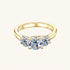 Triple fire, timeless meaning. This gold band features three prong-set moissanites symbolizing past, present, and future. Warm metal enriches their radiant sparkle, creating a luxurious, refined ring that celebrates enduring love, promises, or self-indulgent elegance.