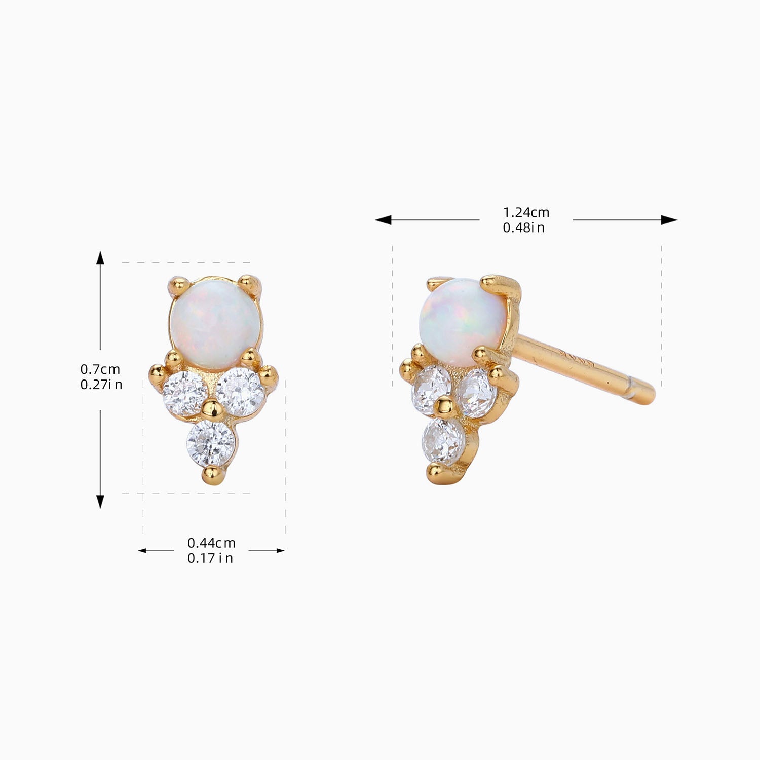 Radiant harmony in gold. A luminous opal glows softly atop three sparkling cubic zirconia stones, each set in delicate prongs. These studs capture ethereal elegance and shimmering brilliance, perfect for daily refinement or a treasured, thoughtful gift.