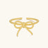 A graceful dance of curves and charm. This gold twisted open ring embraces the finger with a delicate twist, centering on a gleaming bow that sparkles with subtle light. Adjustable and elegant, it is perfect worn alone or layered, adding a refined, luminous touch to every moment.
