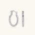 Minimalist luxury staple. The sleek twisted texture shapes a dynamic oval silhouette, with cool silver shine and crisp lines for understated sophistication. Exquisite huggie hoops pair perfectly with our studs to flaunt your style and catch every admiring glance.