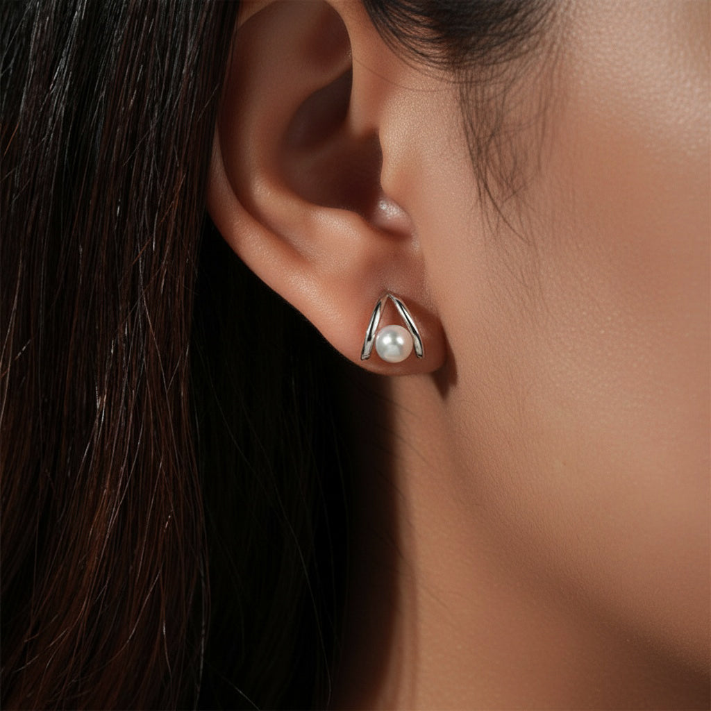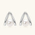 V Shaped Freshwater Pearl Stud Earrings - Silver