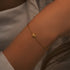 Golden glow with timeless allure. A sparkling gemstone crowns a delicate heart charm at the center of a fine gold chain that drapes elegantly. Perfect solo or layered, it adds subtle radiance and refined sophistication for lovers of dainty gold bracelets, romantic jewelry, and vintage-inspired stacking pieces.