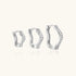 Silver curves in motion. This sculptural earring set offers three types and sizes of gemstone huggie hoops in asymmetrical, wavy shapes. Modern, airy, and subtly radiant, ideal for easy styling, playful stacking, and creating mix-and-match looks that feel uniquely your own.