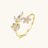 Inspired by nature and delicate elegance, this open gold ring features a pavé pink flower on one tip and a leafy branch of sparkling white and lilac stones on the other. Its wrap design creates a graceful, luminous focal point that elevates every gesture with refined charm.