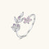 Perpetual spring inspires this silver wrap ring, where a pavé lavender flower glimmers at one tip and a delicate leafy branch of sparkling white stones traces the other. The open design wraps the finger in luminous elegance, blending nature’s grace with refined, modern charm.