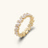 Radiance flows in every angle of this gold eternity ring where tapered baguette stones glimmer like scattered sunlight. The rhythmic zigzag setting creates movement and texture while its luminous warm tone brings a refined sparkle that elevates both daily style and special moments.